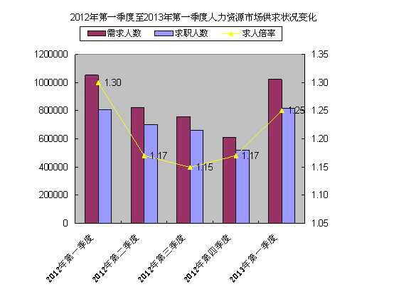 本季度分析数据来源于2013年第一季度全省九个设区市的中心人力资源市场及部分县(市、区)级人力资源市场的职业供求登记。