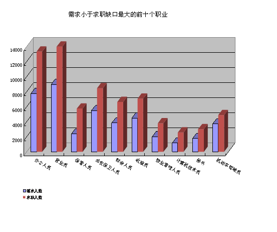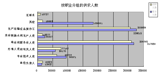 职 业 | 职业代码 | 劳动力供求人数比较 | |||