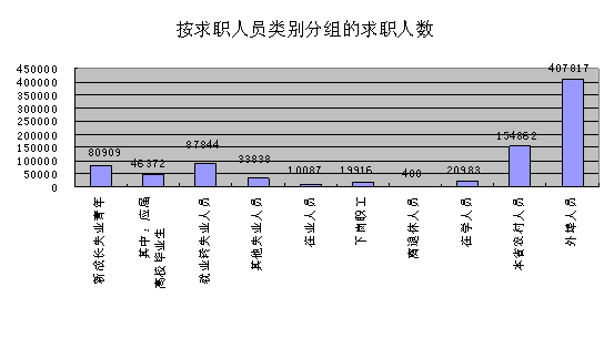 从性别上看,男、女求职人数各占总量的56.15%和43.85%,男性劳动力供给仍然高于女性,女性求职人数与去年同期基本持平。